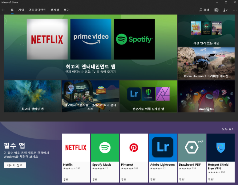 스토어 앱에 들어가면 아래와 같은 창이 나타납니다.