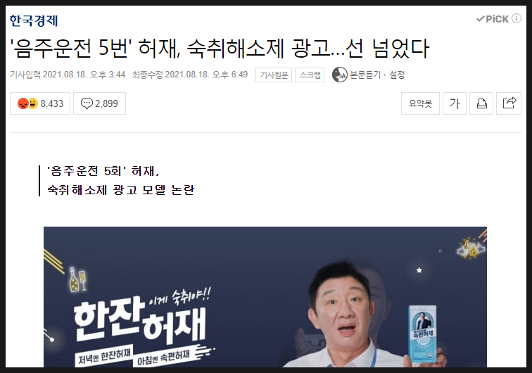 그리고 잘 이해할 수 없는 것은 허재에게 도대체 왜 그런 광고를 받아들인 걸까요. 과거에 명백한 잘못을 저질렀다면 그것에 대해 사람들이 다시 환기가 가능한 행동을 강요해서 한 것입니다. 허재가 돈이 없어서 광고를 찍은건 아니에요. 다만 광고 제의가 들어오면 굳이 거절할 이유가 없었을 겁니다. 어쨌든 리스크 관리에 있어서 매우 실패했습니다. 아니, 처음부터 음주운전을 했던 게 문제인데. 아무튼 여러 가지 면에서 확실히 선을 넘었어요.
