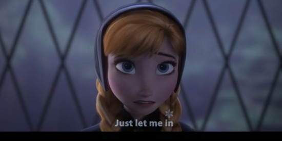 Do you want to build a sno wman? 같이 눈사람 만들래?Orideour bike saround the halls 아니면 복도에서 자전거 탈래?
