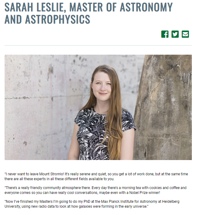 ANU – Sarah Leslie, Master of Astronomy and Astrophysics