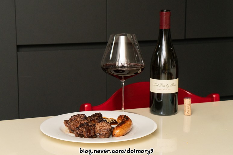 - 오픈 첫날에는 프로슛을 날린 카나페와 함께 즐겼고, 두 번째에는 등심스테이크와 소시지와 함께 즐겼습니다. 절제된 파워가 느껴지는 피노누아로서 꽃등심 스테이크와 가장 잘 어울려요