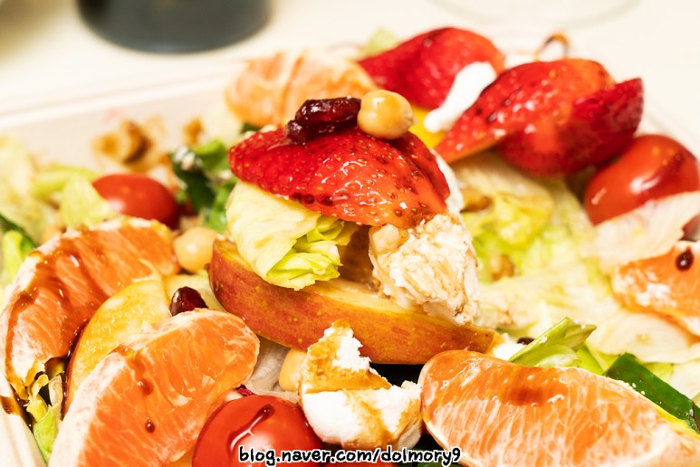 ▲ 코스트코 샐러드에 딸기, 리코타 치즈, 오렌지, 발사믹 그레이즈를 추가하면 끝~