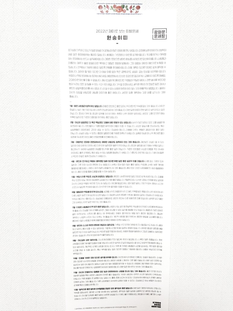 소장하고 싶으신 분들을 위해서 한 장씩 꺼내서 가져갈 수 있도록 되어 있습니다.