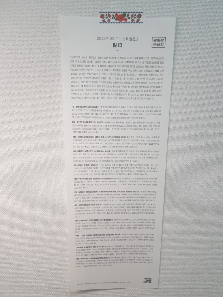 띠별 월별로 2022년의 운세를 알 수 있습니다.