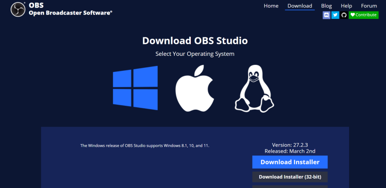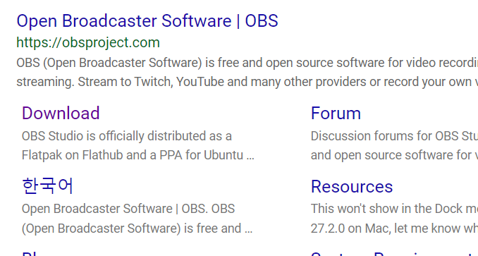 OBS 설치 및 간단한 인터페이스 소개 인터넷 창에 obs로 검색하면 아래와 같은 링크를 발견할 수 있습니다. 다운로드를 클릭합니다. 파란색 버튼의 강조 버튼을 클릭하여 설치하시기 바랍니다.설치 파일 다운로드는 >>여기<< 를 클릭하세요.