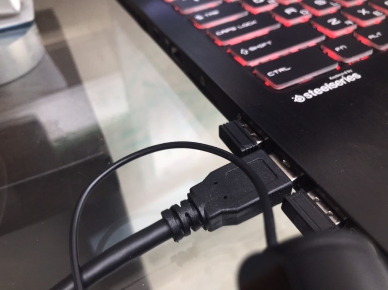 - 먼저 전원을 연결하세요. usb로 노트북에서 전원을 끌어와 캡처 보드에 공급합니다.