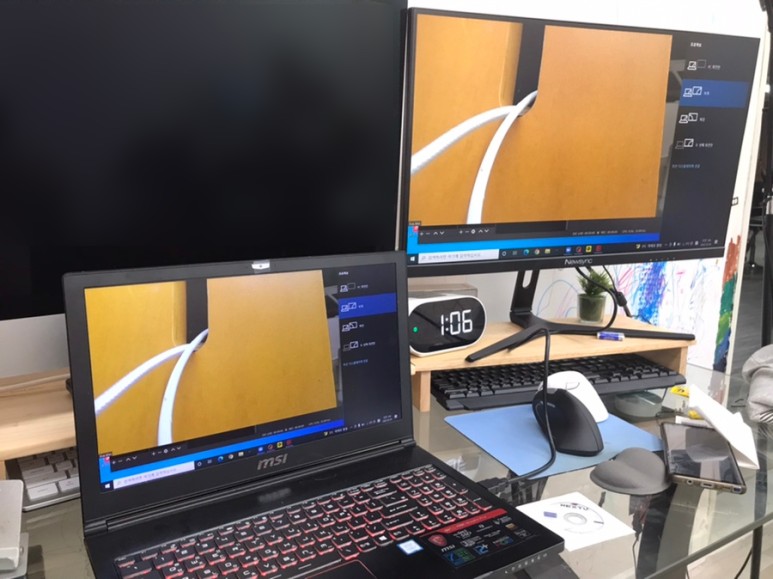 그러면 아웃풋으로 뭘 할 수 있을까 아웃풋과 모니터를 연결하면 모니터는 실시간으로 화면 모니터링을 할 수 있습니다.