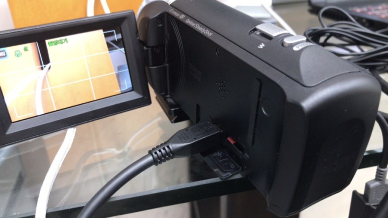 2. 캠코더 영상을 캡처보드로 연결합니다. 캡처보드에는 hdmi input과 output 두가지가 있기때문에 카메라등의 기기는 반드시 hdmi input에 꽂아줍니다.