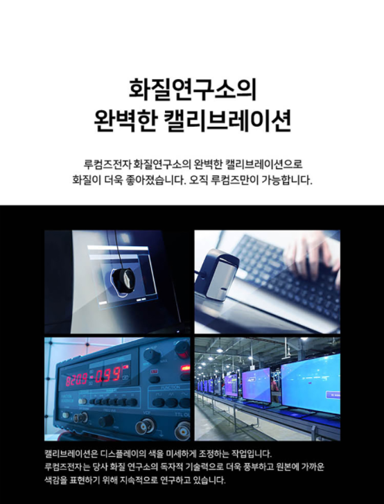 넷플릭스 드라마 D.P. 속협찬 모델이면서 제가 사용중인 제품이기도 한 FHD 솔로뷰 TVT4002C 모델은 루콤즈 전자의 화질연구소 자체 기술력과 캘리브레이션을 통해 화질을 더욱 선명하게 보여준다고 합니다.
