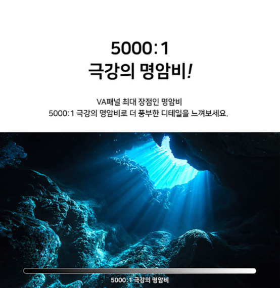 캘리브레이션은 디스플레이의 색을 미세하게 조정하는 작업으로 보다 풍부하고 원본에 가까운 색감을 표현하며, VA 패널의 최대 장점인 5000:1 최강의 명암비로 풍부한 디테일을 느낄 수 있다고 합니다.