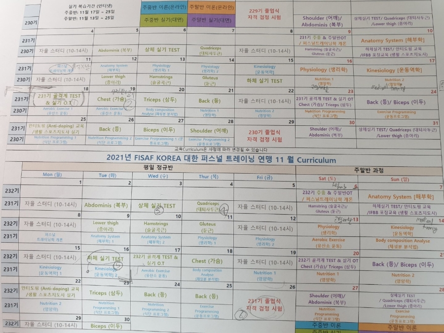 커리큘럼과 시험일정도 빡빡합니다. 꽉찬 일정… 실습뿐만 아니라 이론수업도 병행하기 때문에 10월달은 자격증 취득에 매진할 것 같습니다.