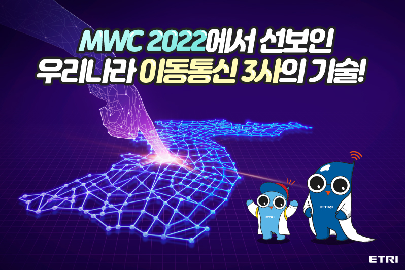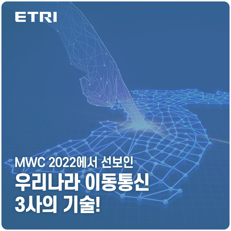 안녕하세요 ETRI 블로그 에트리 통신원입니다세계 최대 이동통신 전시회 MWC2022 (Mobile World Congress 2022, 모바일 월드 콩그레스)가 3년 만에 스페인 바르셀로나에서 개최되었습니다! 2월 28일부터 3월 3일까지 진행된 MWC2022에서 한국의 이동통신 3사(KT.LG유플러스, SK텔레콤)도 ICT의 미래를 선보이기 위해 바르셀로나에 출격했습니다! 그럼 지금부터 한국의 이동통신 3사가 MWC2022에서 선보인 기술을 살펴보겠습니다.
