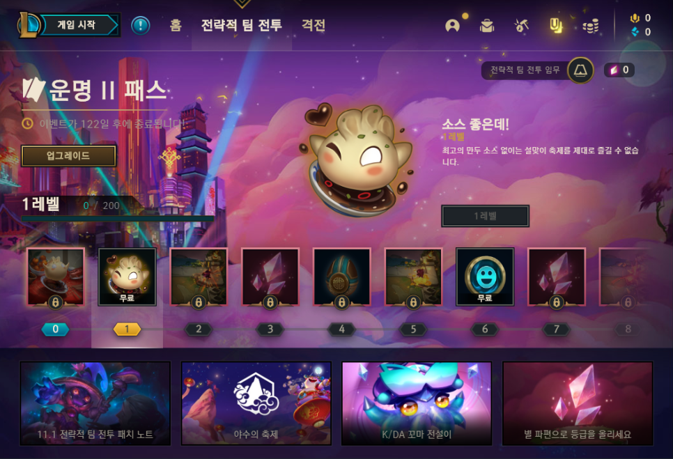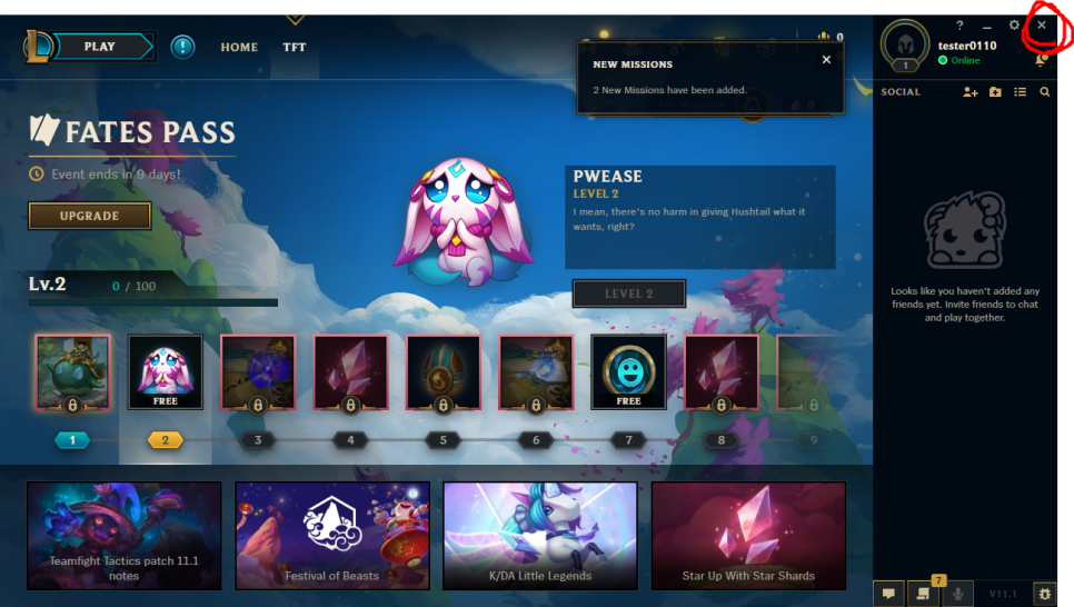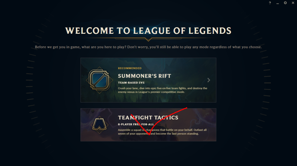 TEAM FIGHT TACTICS 눌러서 LOL 메인 화면 뜨면 이제 꺼주세요.