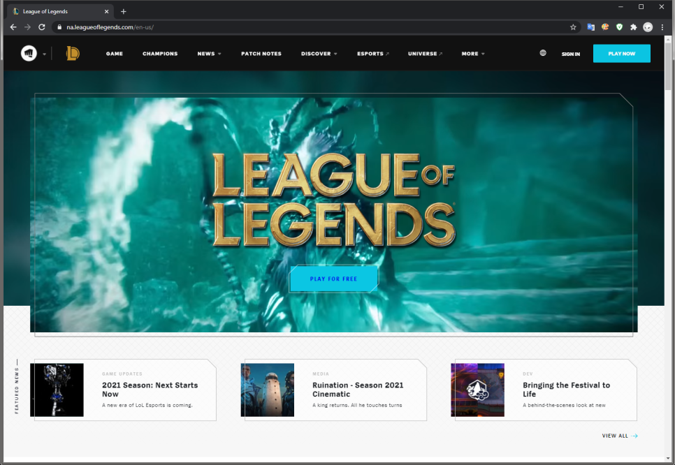 VPN국 선택을 USA로 한 후 LOL 홈페이지를 방문합니다. (사진처럼 검색하거나 하는 링크에 들어갑니다.) https://na.leagueoflegends.com/en-us/League of Legends is ateam-based game with over 140 champions to make epic plays with. Play now for free.na.leagueoflegends.com