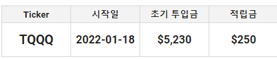 초기투입금 5,230$로 시작했어요. 하필이면 시작시점이 TQQQ 하락을 본격화하는 입구였어요.