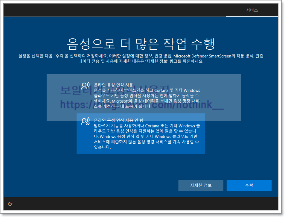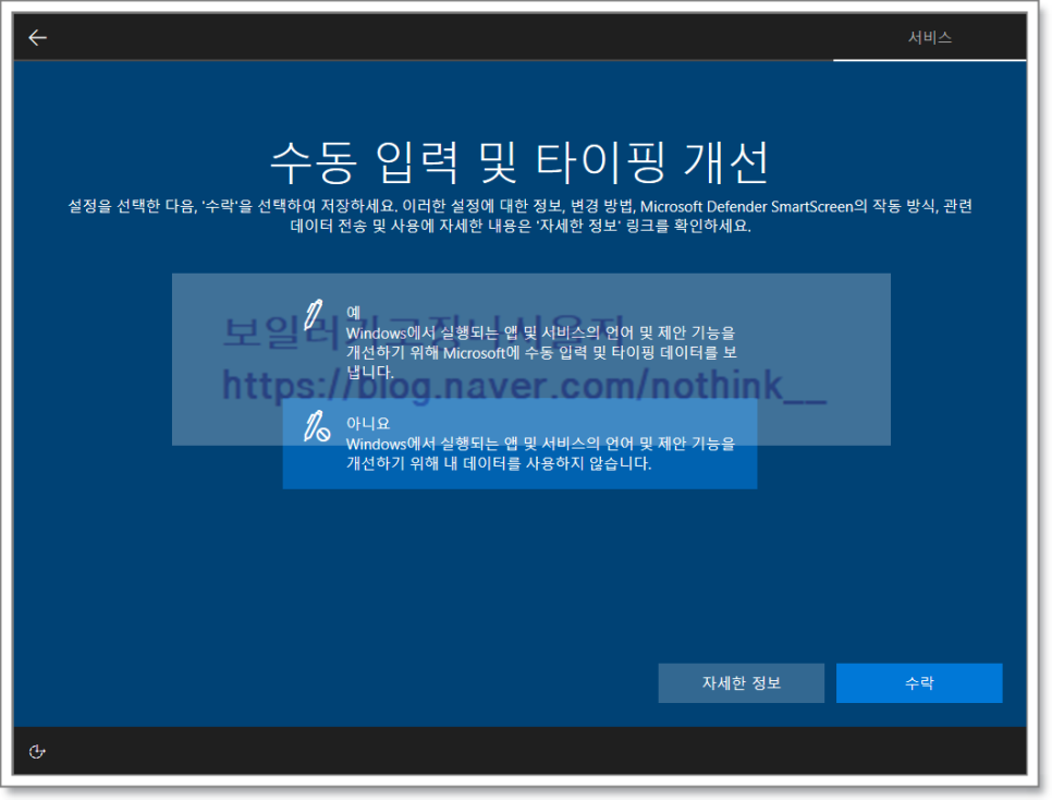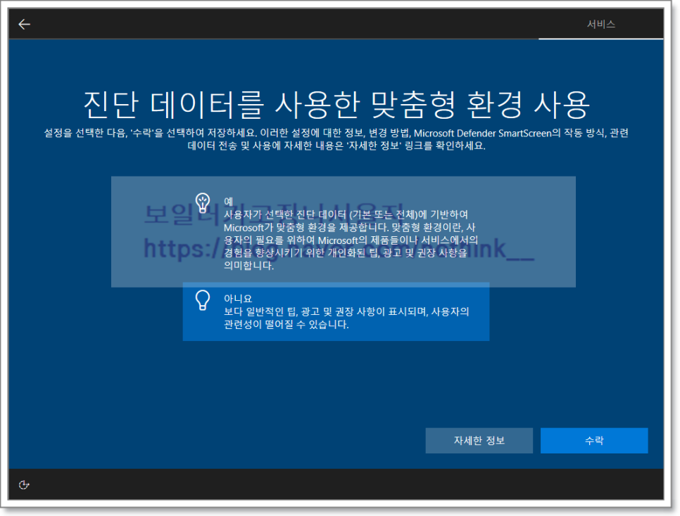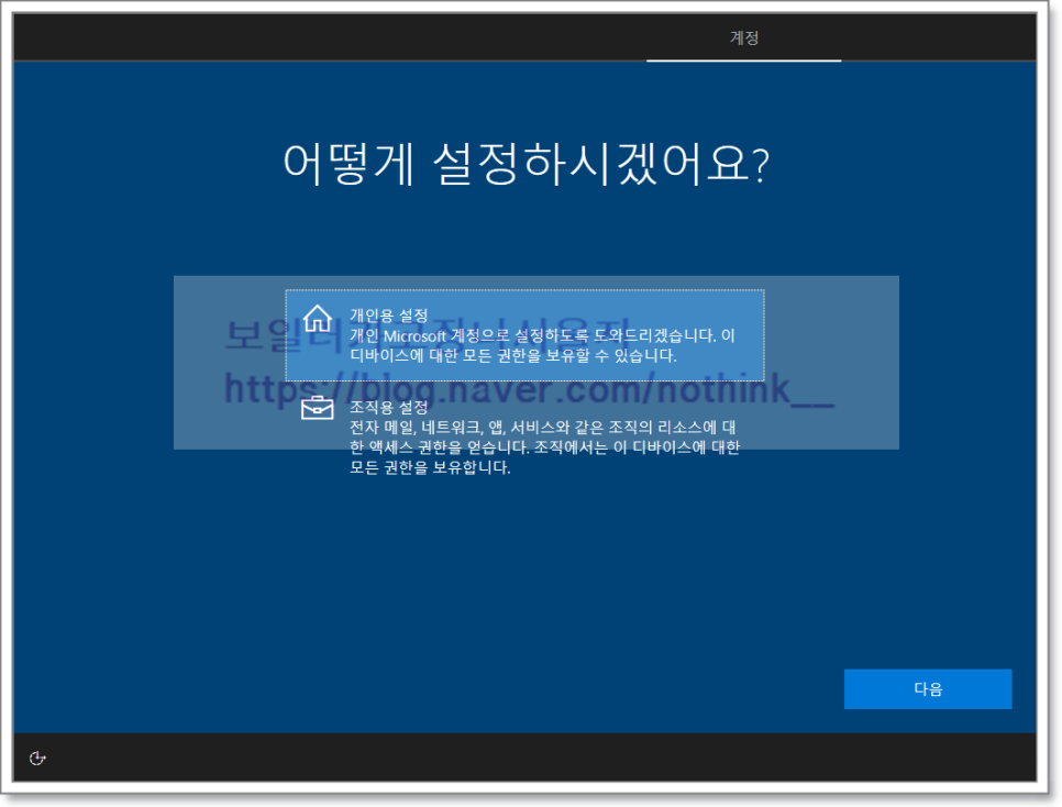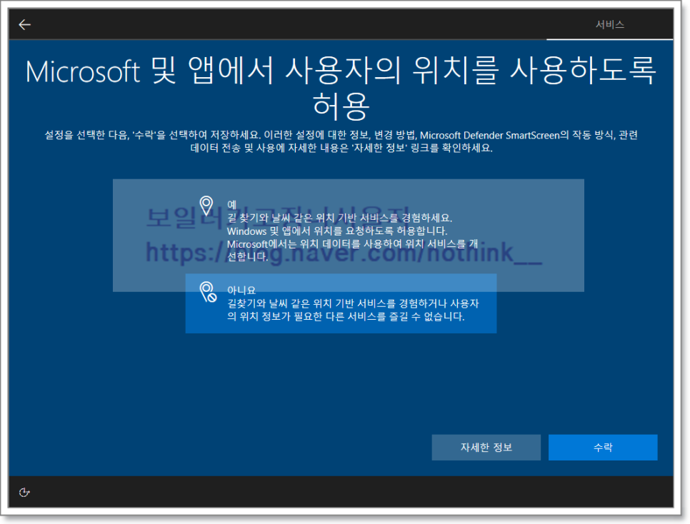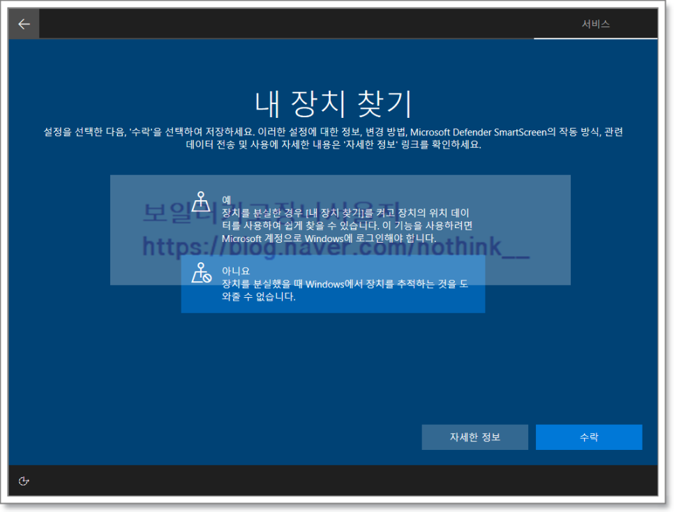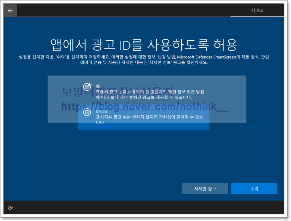 여기서부터 설정은 자유롭게 하면 되는데 저같은 경우 거의 두번째 안하기 기본아니오 등을 선택합니다.