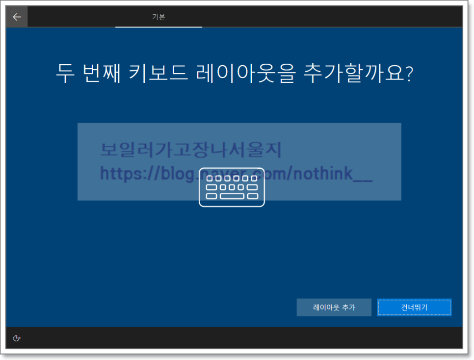 두 번째 키보드가 있으면 추가가 없는 경우에는 건너뛰기를 누릅니다.